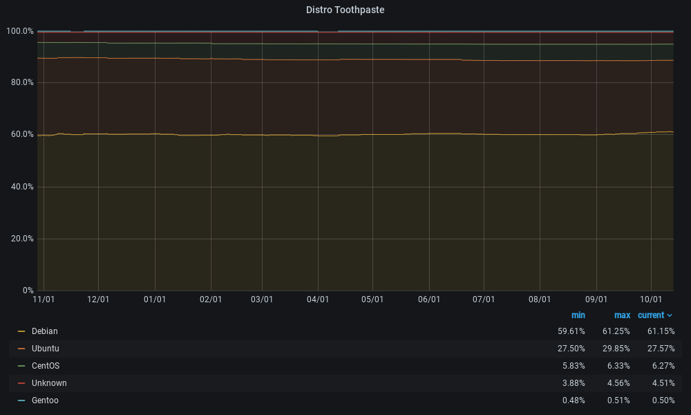 Ever wondered what Linux distribution other BitFolk customers pick? Check out Distro Toothpaste!